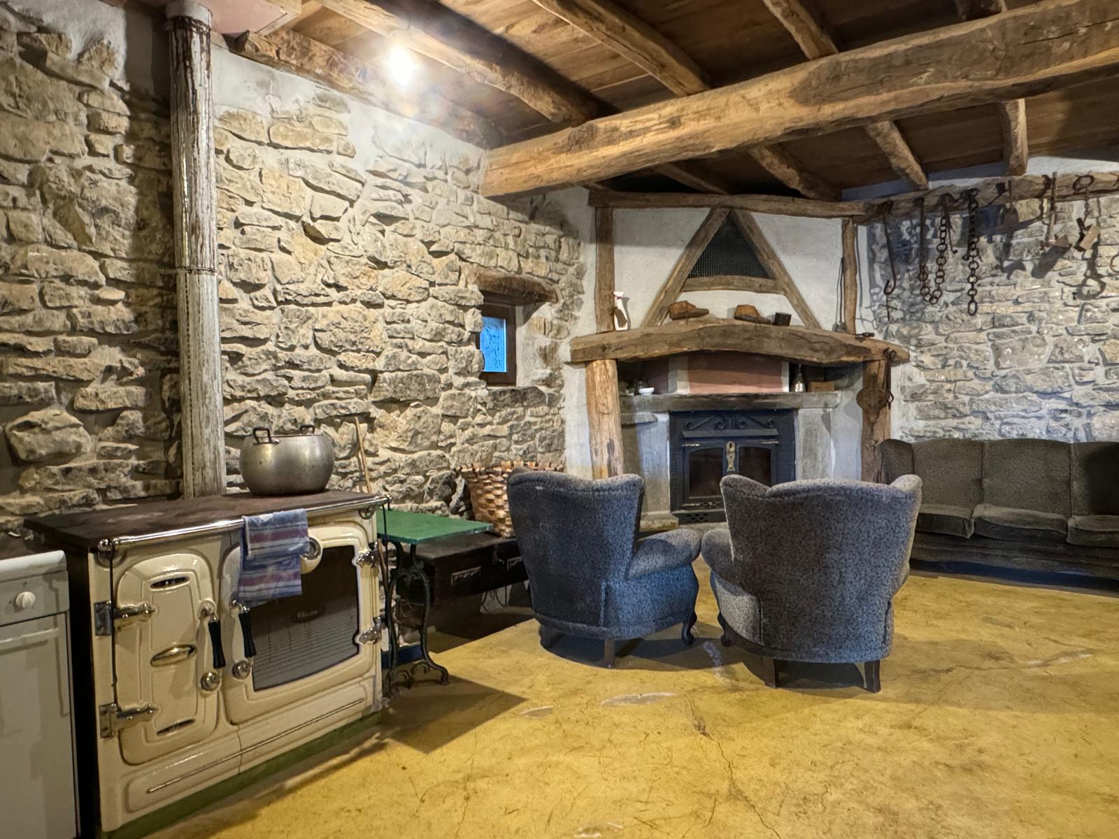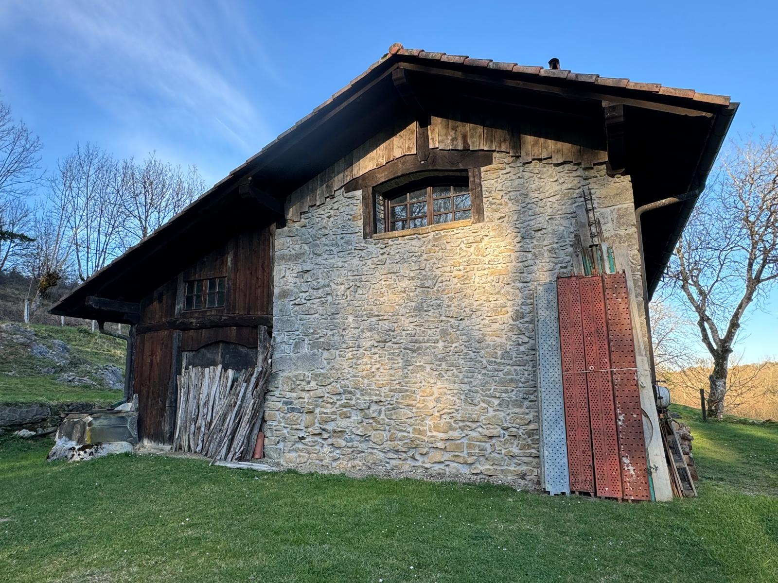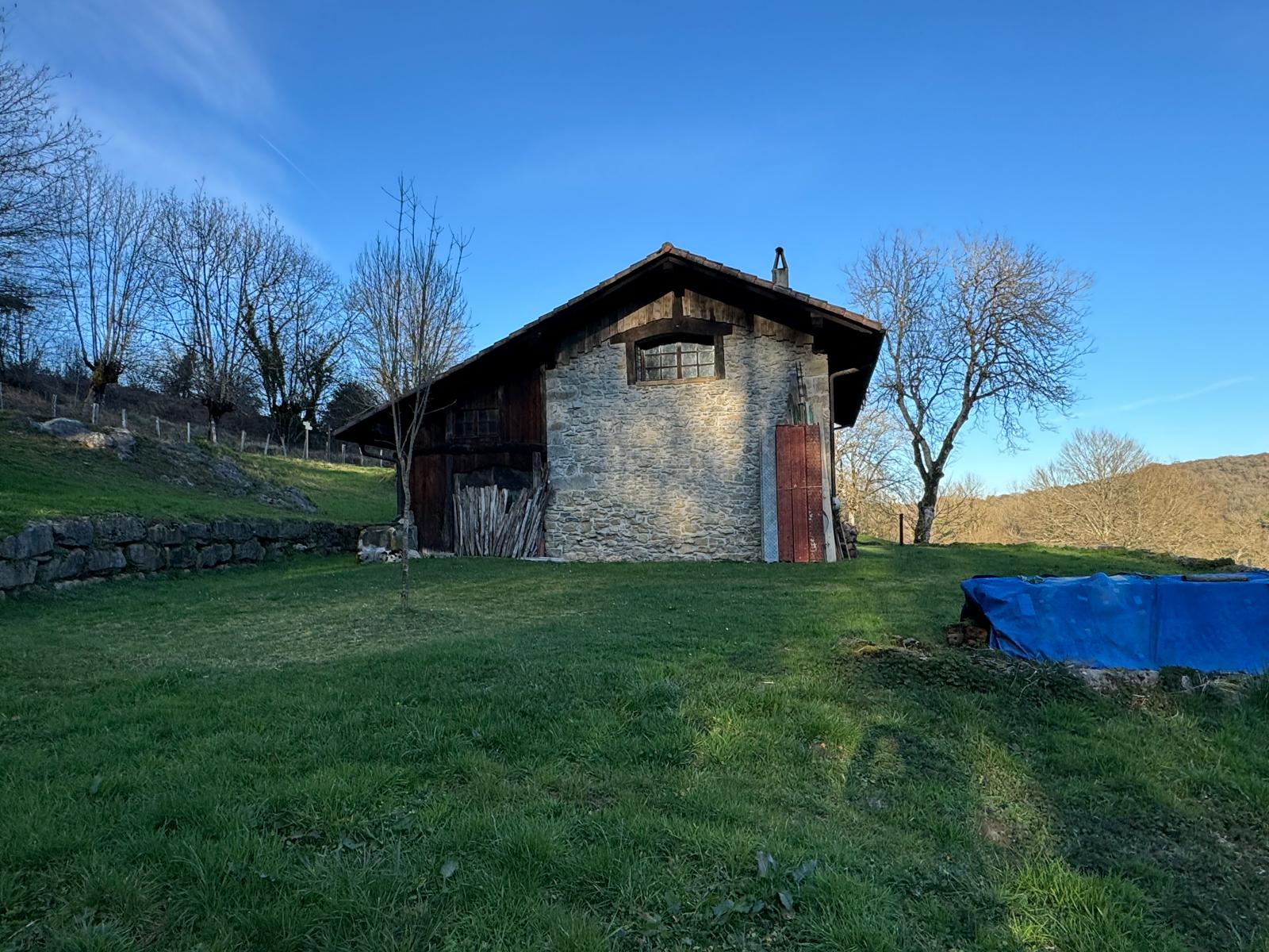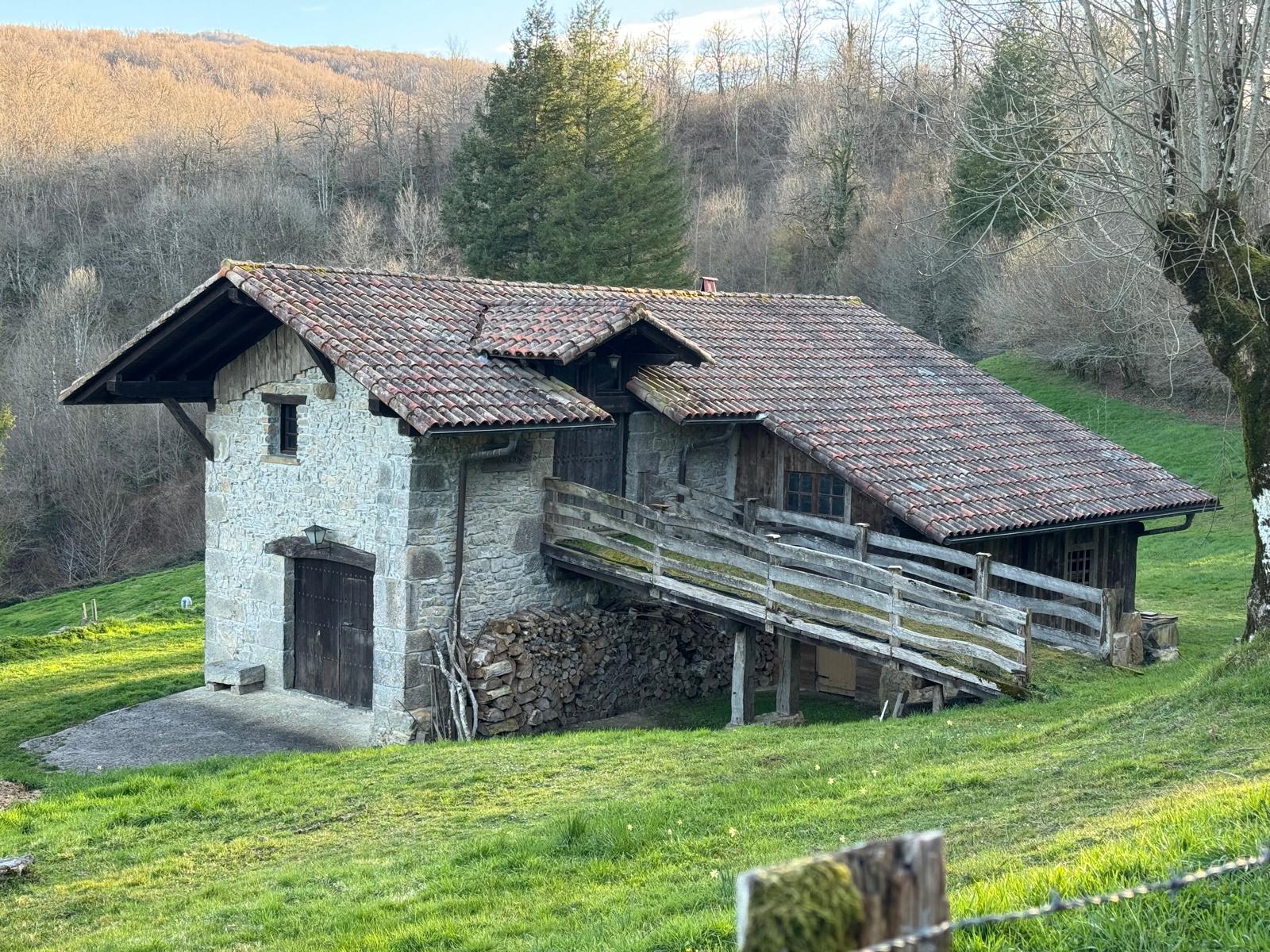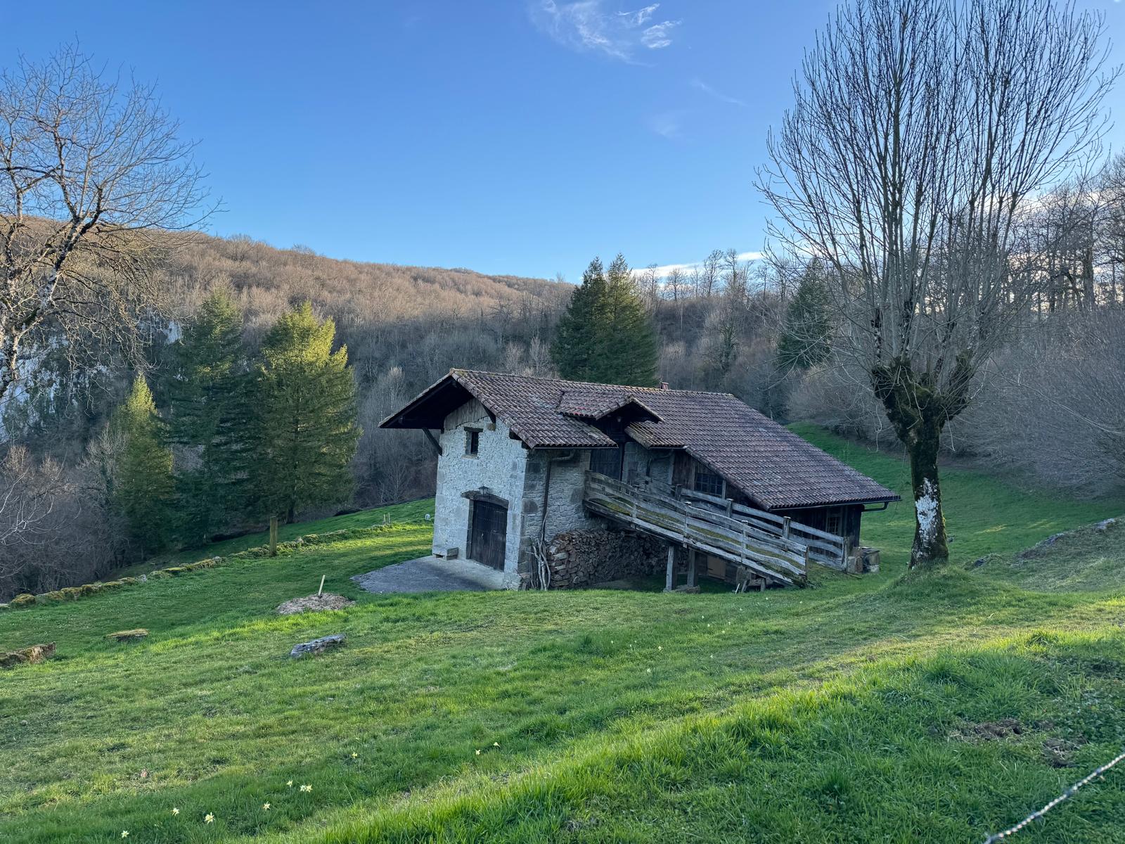 Borda ederra Iribasen, Larraun ibaiaren iturburuaren bista ikusgarriekin.