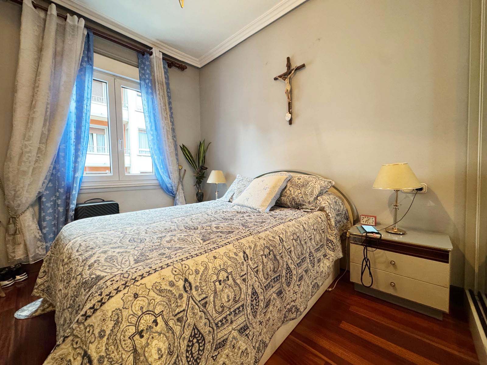 Bonita vivienda a dos fachadas, c/ Rondilla y c/ Arostegieta, el edificio tiene ascensor y el estado del mismo es muy bueno. La vivienda está dividida en cocina y baño hacía la c/ Arostegieta, habitación principal y sala hacía Rondilla y dos habitaciones y trastero a patio. La vivienda es soleada y luminosa. Apropiada para el que quiera vivir en el centro, cerca de todos los servicios y con ascensor.