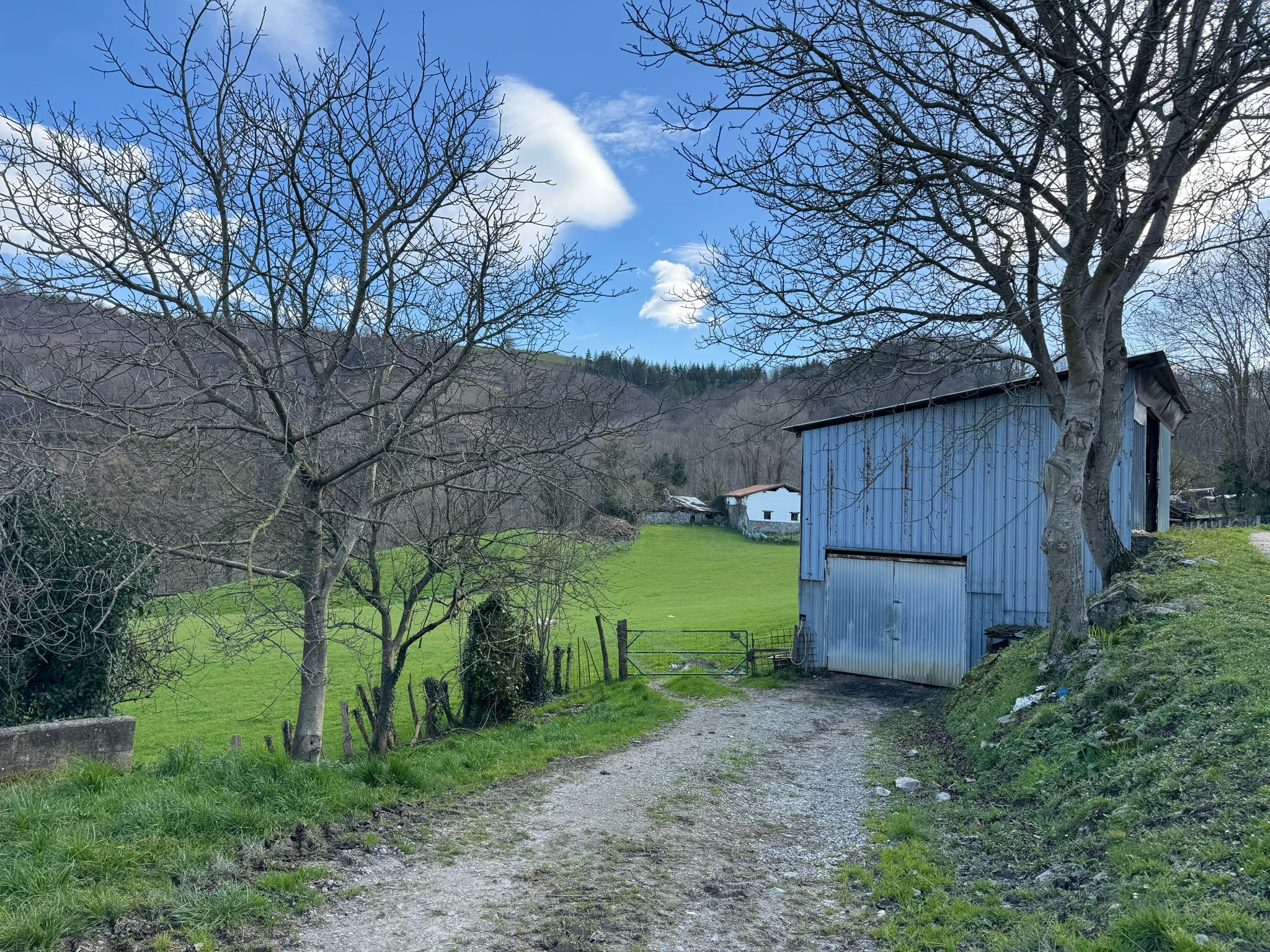 Alrededor del caserío hay un terreno pradera muy bonito, que llega hasta la puerta del mismo y contiene dos bordas.